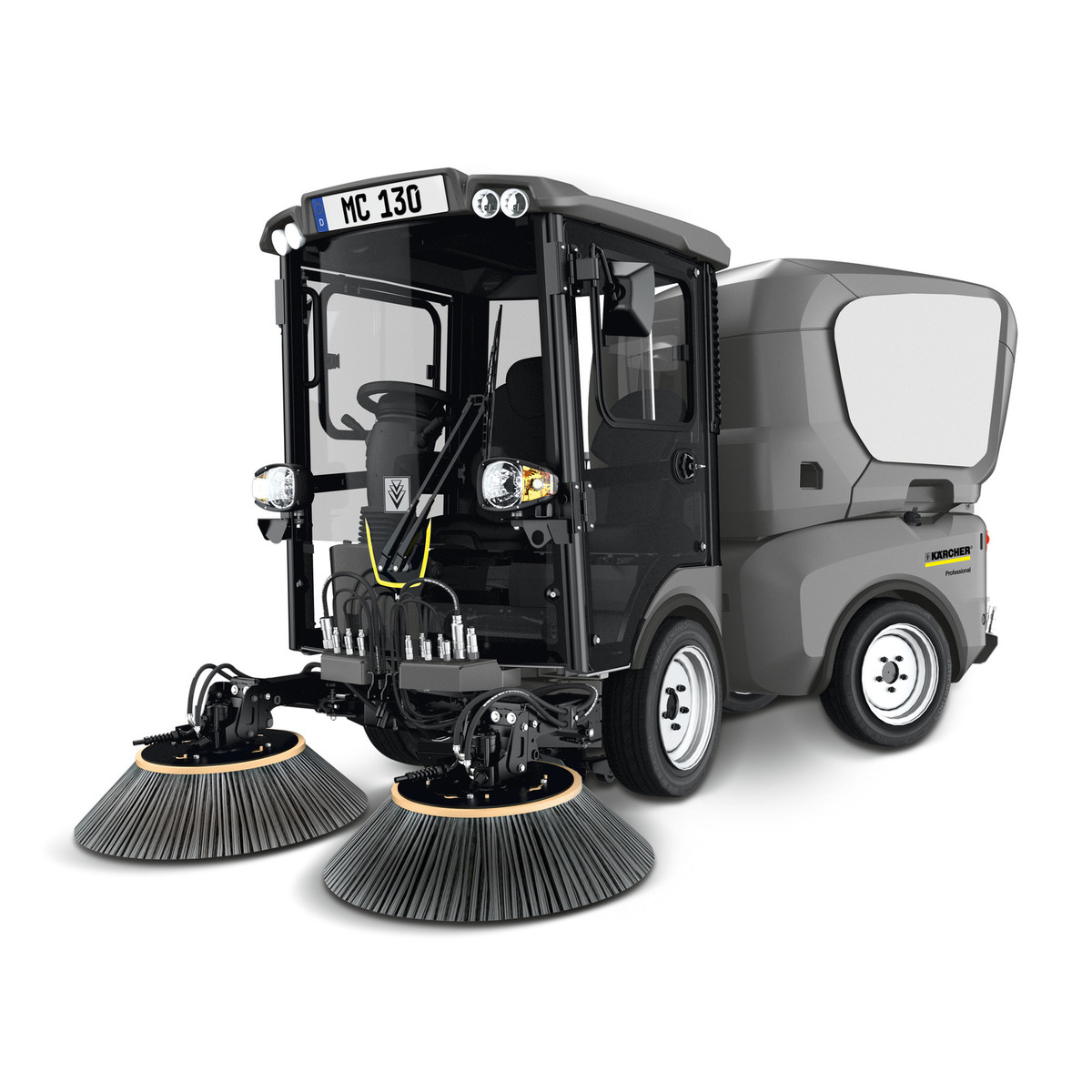 MC 130 Plus nhỏ gọn của Kärcher hiện là máy quét hai chỗ ngồi duy nhất trên thị trường trong danh mục 3,5 tấn. Được vận hành bởi động cơ diesel 66 mã lực (chứng nhận khí thải STAGE IIIB Cấp 4), cỗ máy này mang lại hiệu suất ấn tượng trong tất cả các mùa với sự cân bằng hoàn hảo giữa hiệu suất và hoạt động kinh tế. Ngoài một động cơ hiệu quả, đặc biệt chế độ hiệu quả sinh thái được cấp bằng sáng chế của chúng tôi đảm bảo hiệu quả tối đa bằng cách tối ưu hóa tốc độ động cơ và sức mạnh thủy lực ở chế độ quét tự động, do đó tiếp tục đảm bảo hiệu suất quét hoàn hảo. Thùng chứa chất thải hào phóng nhanh chóng được gắn và loại bỏ thông qua khung đính kèm nghiêng thủy lực tích hợp – không cần dụng cụ. Hệ thống bàn chải cũng có thể được loại bỏ nhanh chóng bằng xe đẩy nếu cần thiết. Cabin hai người thoải mái có khả năng hiển thị toàn diện tuyệt vời và màn hình đa chức năng độc đáo với bố trí trực quan các điều khiển vận hành được thiết kế với sự rõ ràng và công thái học. Hệ thống treo bốn lần thủy động lực đảm bảo sự thoải mái khi lái xe với độ rung thấp và độ ồn thấp.